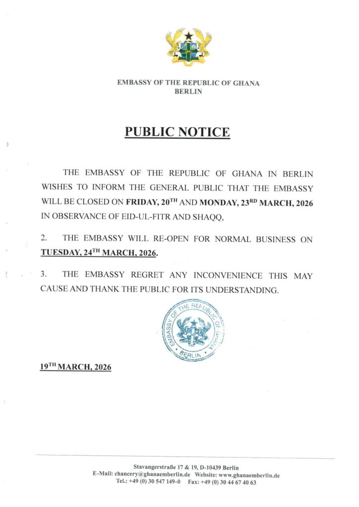 We are committed to strengthening Ghana’s bilateral relations with the Federal Republic of Germany and the countries of concurrent accreditation, while delivering efficient and responsive services to all.